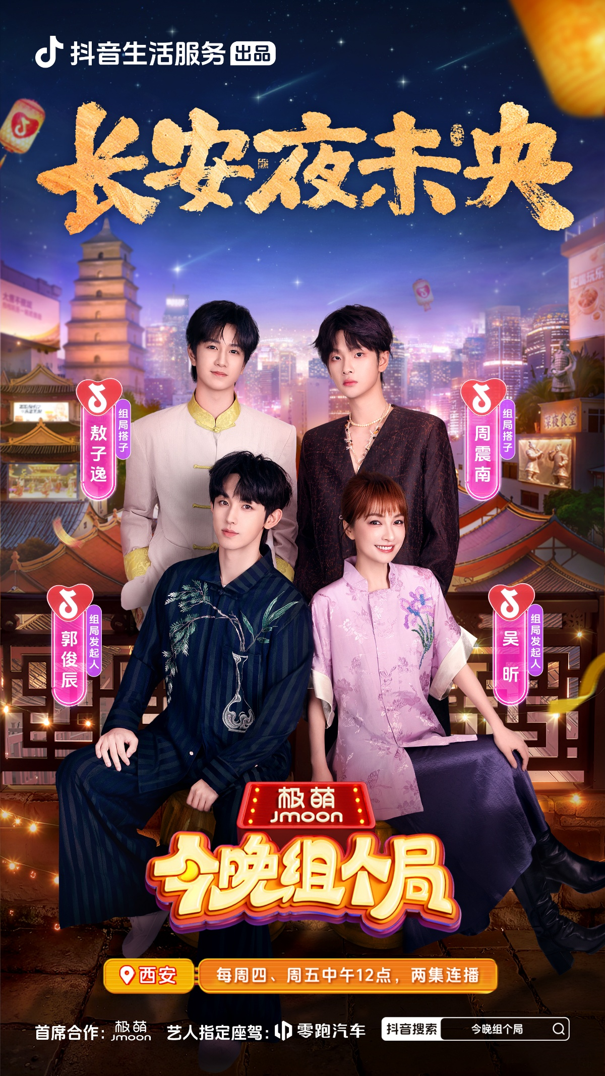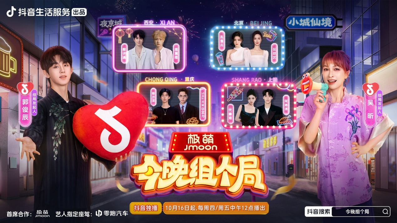由抖音生活服务出品的全国首档夜间潮流生活体验小鲜综——《今晚组个局》于10月16日正式开播。节目由吴昕、郭俊辰两位组局发起人领衔,每期携手两位组局搭子,深入一座城市,在不眠之夜中,开启一场关于“夜经济 + 情绪解压”的沉浸式体验。