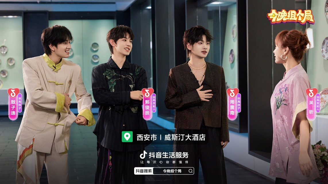 《今晚组个局》首期节目,把“夜游西安”拍成了一场大型穿越秀。吴昕化身“大小姐”,携郭俊辰、周震南、敖子逸三位“花美男弟弟”,在古都长安的霓虹街巷中展开趣味挑战。
