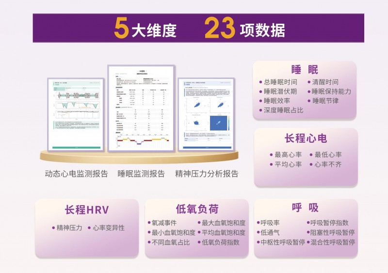 清雷科技依托清华大学20年研发积淀,成功研发全球首款基于毫米波雷达与人工智能融合的睡眠呼吸监测系统。该系统通过非接触式雷达设备与腕式血氧仪协同工作,可精准监测用户呼吸、心率、血氧饱和度、体动、等多项生命体征,并结合AI算法自动生成睡眠结构分期、呼吸暂停低通气指数(AHI)、氧减事件(ODI)等专业诊断报告。相较于传统PSG多导睡眠监测,清雷系统无需佩戴复杂电极,极大提升了医院与居家场景的监测效率。