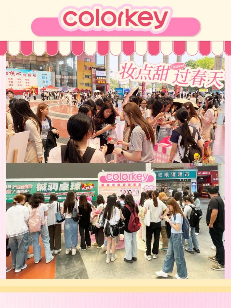 3月下旬,重庆大学城U街和广州大学城商业中心广场迎来了甜度+1000%的Colorkey珂拉琪「甜品乐园」。活动现场人潮涌动,同学们热情高涨,纷纷参与到缤纷多样的互动体验中一一创意彩妆试妆,体验全新的珂拉琪产品系列;和珂拉琪特邀高颜值“美妆社社长”打卡拍照、让品牌彩妆师改妆……欢声笑语不断,人气非常高涨。