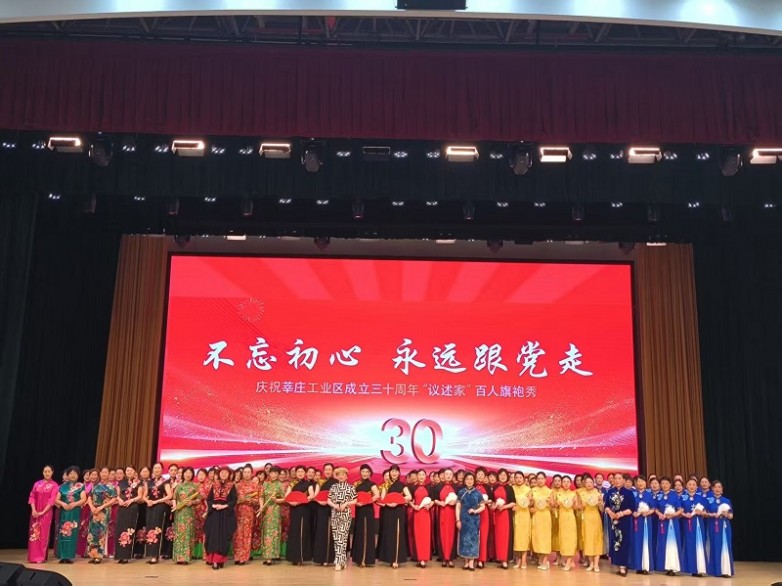 活动现场,75岁的退休工人吴阿姨作为旗袍队领队表示,我们都是在工业区居住了三十年的社区老党员了,是园区发展的见证者,也是参与者。今天我们组织开展旗袍秀巡游活动,就是用脚步丈量工业区发展建设的这三十年,从“乡村农田”到“智造新城”的变迁。