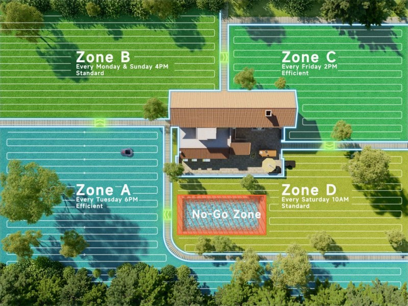 得益于AI辅助自动建图功能,ViAX系列可自动绘制庭院地图,完整识别草地边界。配合多区域管理和双地图功能,用户可为前后院或不同物业的草坪设定个性化修剪计划。通过MOVAhome App,用户还能选择不同割草模式,包括全局修剪、沿边修剪、定点修剪、手动修剪等,甚至还能自定义艺术图案,如心形或方形,让草坪成为庭院的一道风景。