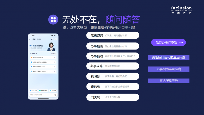 2025 Inclusion·外滩大会期间,支付宝数字政务团队发布全新政务AI助手“晓政”,融合DeepSeek、通义千问、蚂蚁百灵三种大模型,利用智能推理模型创新打造政务办事新模式,让用户办理公积金、社保等政务服务像聊天一样方便,全国 16000 种政务服务一键直达,助力政务服务全面迈进AI时代 。