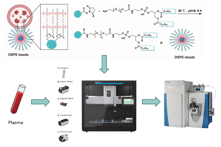 近日,北京大学成都前沿交叉生物技术研究院王初教授团队成功开发出一种DSPE功能化磁珠介质,可在10分钟内高效富集体液中的胞外囊泡。该团队进一步将这一创新介质与Opentrons Flex高性能自动化移液工作站整合,开创了胞外囊泡蛋白质组学样本的全流程自动化制备方案。该方案实现了从EVs富集、裂解、酶切到质谱前处理的“单管闭环”操作,彻底解决了传统方法在通量与稳定性方面的不足,大幅降低了样本间交叉污染的风险。