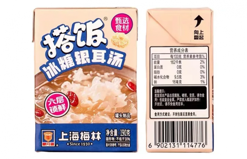 值得一提的是,上海梅林搭饭系列冰糖银耳汤食用方式便捷,开封后可直接食用,无需复杂炖煮,解决了传统银耳汤需耗时两三个小时才能煮至软糯出胶的痛点。